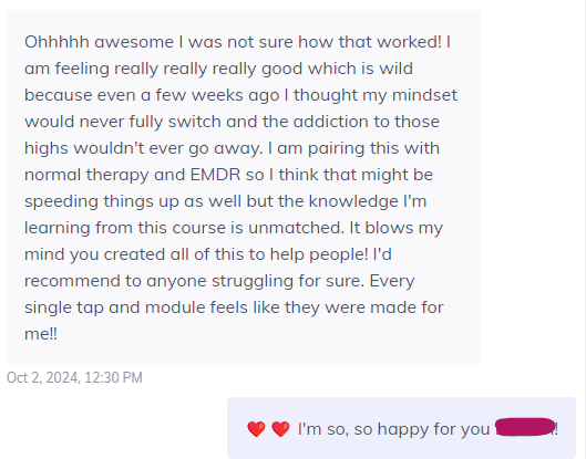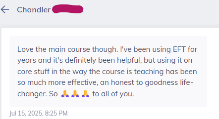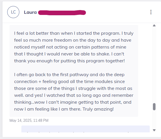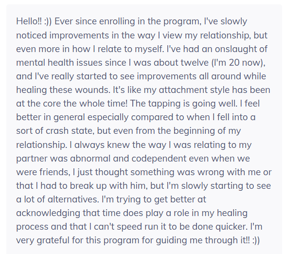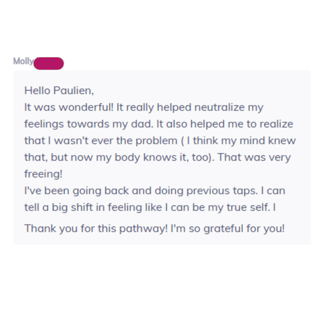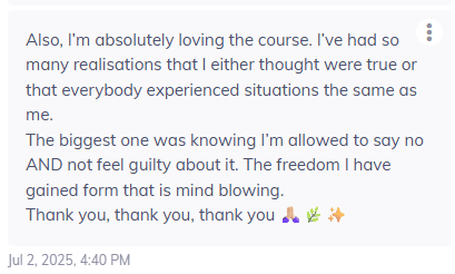 "Just did Module 2 - Who you are. It almost brought tears to my eyes. This was the thing I was searching for the last 8 years Paulien, and maybe my whole life before that unconsciously due to attachment trauma.."